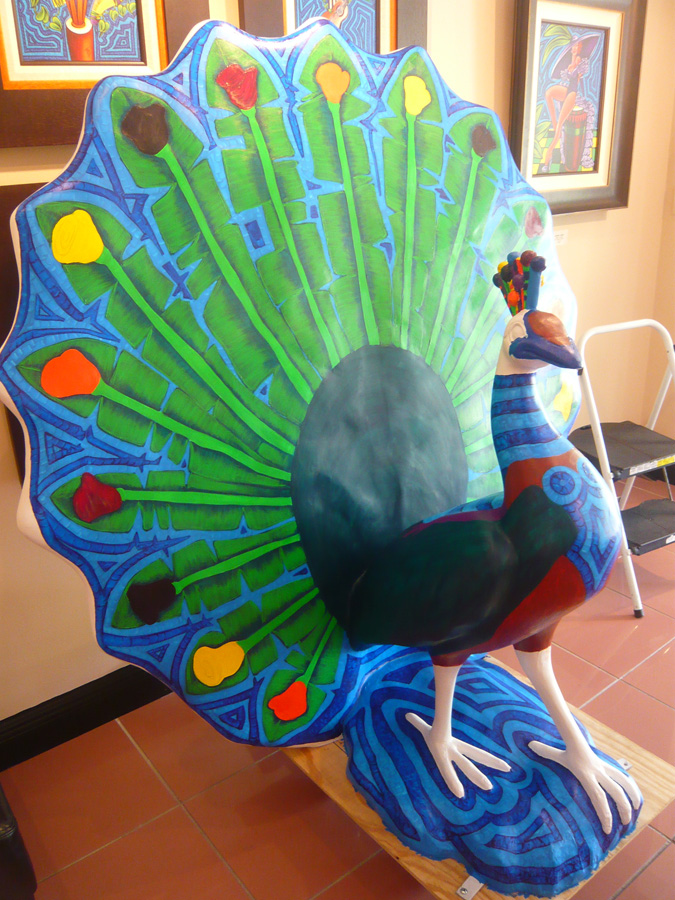 The images below are of Penelopeacock with the other peacocks when they were presented and shown off to the public the first time, and then finally in her Peacock Tour position at “The Bookstore” in the Grove @ Virginia St. and Grand Ave.