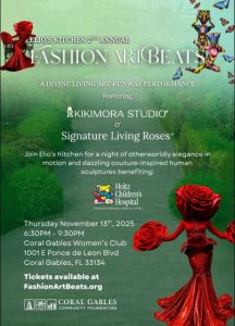 Fashion Art Beats, in collaboration with Elio’s Kitchen, proudly presents the 2nd Annual Fashion Art Beats benefiting Holtz Children’s Hospital. The event will take place on Thursday, November 13, 2025, from 6:30 to 9:30 pm at the Coral Gables Women’s Club, located at 1001 E Ponce de Leon Blvd., Coral Gables, Florida. I’m honored to have contributed several of my art pieces to the evening’s silent auction.